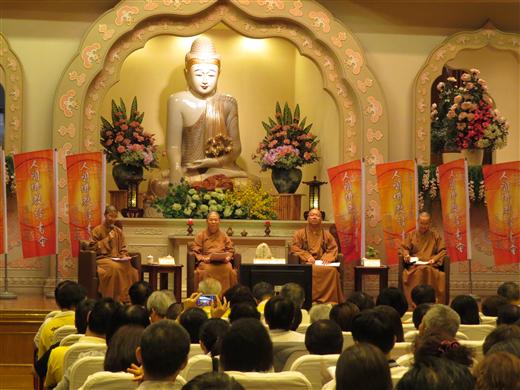 [caption id="attachment_1530" align="alignnone" width="520"] 5百人共讀探討六祖壇經[/caption] [caption id="attachment_1529" align="alignnone" width="520"] 「好書導讀」單元,由佛光山人間佛教研究院妙凡法師主持,佛光會覺多法師對星雲大師著作「人間佛教的發展」做了非常有系統的解讀、串連、分析,有果法師推薦「星雲禪話」,並以自己打掃淨房的經驗呼應「熱往熱裡去」的禪師風範,讓大家見識到法師在生活中修道的一面;叢林學院女眾學部的知觀法師介紹星雲大師著作「無聲息歌唱」,佛光青年團的張雅閔則分享「十種幸福之道《佛說妙慧童女經》」。[/caption] [caption id="attachment_1528" align="alignnone" width="520"] 「從《六祖壇經》談人間佛教」論壇中,主持人妙嚴法師和心保和尚、佛光山教育院院長永光法師、佛光山編藏處永中法師展開對談。針對如何發現本自具足、本不生滅的佛性,心保和尚指出,甚深智慧來自對煩惱的體察,菩薩在人間修行,了解眾生的煩惱痛苦,因而生起大悲心,啟發眾生如實修行轉化煩惱,自心本來清淨,煩惱可轉為清淨菩提。[/caption] 2014-04-23 ‧ 活動報導 古德說:人生最大幸福事,夜半挑燈讀壇經,在禪宗龐大的典籍中,《六祖法寶壇經》被視為是一部無上的寶典,在中國佛學思想上具有承先啟後的力量。人間佛教閱讀研討會第五場次,19日回到佛光山舉辦,近五百位高雄、屏東地區愛書人,在如來殿體驗共讀壇經的最大幸福。 禪宗自五祖後,以《金剛經》印心,六祖惠能大師也因聽聞《金剛經》而開悟,佛光山住持心保和尚導讀經典,首先提點金剛經文「不住色聲香味觸法」,收攝眼耳鼻舌身意六根不向外攀緣,一般人不容易做到,這須要依靠智慧來觀察、簡擇,和尚援引茶禪為例,點撥學人參究「喝茶時,當舌頭還沒有碰觸到茶湯之前,味道在哪裡?」,更進一步說明,喝茶前對茶香既有的熟悉味道概念,也只是把過去曾有的記憶,再叫出來回憶一下而已。 心保和尚表示,《金剛經》宣說離相(離我等四相),「相」即是內心的一種觀念,「我」是一個代名詞,把執著「我」的概念放下,就沒有種種貪嗔煩惱;禪宗將達到「無我相」境界喻為「漆桶脫落、智光透入」,若能無相無執著,則心無罣礙。 保和尚接著引領大眾進入《六祖壇經》各品,闡述自性迷即是眾生,自性覺即是佛,慈悲即是觀音,喜捨名為勢至,能淨即釋迦,平直即彌陀。鼓勵大眾修慈悲、行喜捨,成就心中的淨土。 「從《六祖壇經》談人間佛教」論壇中,主持人妙嚴法師和心保和尚、佛光山教育院院長永光法師、佛光山編藏處永中法師展開對談。針對如何發現本自具足、本不生滅的佛性,心保和尚指出,甚深智慧來自對煩惱的體察,菩薩在人間修行,了解眾生的煩惱痛苦,因而生起大悲心,啟發眾生如實修行轉化煩惱,自心本來清淨,煩惱可轉為清淨菩提。 談到〈疑問品〉中惠能大師強調福田不是功德,永光法師引用達摩祖師從印度來到中國與梁武帝的對答,說明「福田」與「功德」之別,強調布施者不執著於能施的人、所施之物與受施者,就像邀約千人加入佛光山百萬人興學的「大學阿嬷」,把大學留給社會,把功德留給子孫,無私無求的喜悅付出,感動了許多人。 永中法師則說明「空」不是一無所有,緣起性空是世間萬象的真理法則,宇宙萬有雖外相有起伏變化,只要深入觀察思惟緣起的差別相,便可見證緣起性空法則。 「好書導讀」單元,由佛光山人間佛教研究院妙凡法師主持,佛光會覺多法師對星雲大師著作《人間佛教的發展》做了非常有系統的解讀、串連、分析;有果法師推薦《星雲禪話》,並以自己打掃淨房的經驗呼應「熱往熱裡去」的禪師風範,讓大家見識到法師在生活中修道的一面;叢林學院女眾學部知觀法師介紹星雲大師《無聲息的歌唱》;佛光青年團張雅閔則分享《十種幸福之道─佛說妙慧童女經》。