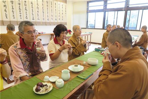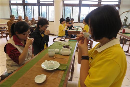 [caption id="attachment_1984" align="alignnone" width="520"] 「茶禪」讀書會台灣區執行長鄧淑明引導20多位講師、書香義工及法師,進行層次教學演練,體會佛法要義。[/caption] [caption id="attachment_1983" align="alignnone" width="520"] 泡茶師依照主持人的引導,從溫杯、置茶、沖泡、聞香、品茗中體驗禪境。[/caption] [caption id="attachment_1982" align="alignnone" width="520"] 「茶禪」讀書會,第一泡茶,在時間的秒數中,呈現出它的濃度與香氣,從鼻腔中體會茶香、花香或木香。[/caption] [caption id="attachment_1981" align="alignnone" width="520"] 人間佛教讀書會總部,以「茶禪」進行讀書會,聞杯中體驗茶香。[/caption] [caption id="attachment_1980" align="alignnone" width="520"] 石娟娟(右)抽到一支「愛,就是惜,就是慈悲、服務、包容」的詩籤,感到以前的不足,開始勾勒下次讀書會的藍圖,並且要將對子女的愛擴大。[/caption] [caption id="attachment_1979" align="alignnone" width="520"] 人間佛教讀書會世界總部總執行長覺培法師全程參與,給大家指導和鼓勵,他說:從茶技、茶藝、茶道到茶禪,是一種生活意境的內化,也是生命價值的提昇。[/caption] 2016-12-22 ‧ 活動報導 人間佛教讀書會總部,12月22日下午以「茶禪」進行讀書會,由台灣區執行長鄧淑明主持,引導20多位講師、書香義工及法師,在金光明寺一信堂進行層次教學演練,體會佛法要義。 茶禪讀書會分5組同時進行,每組推派一人當泡茶師,依照主持人鄧淑明的引導,從溫杯、置茶、沖泡、聞香、品茗中體驗禪境。他說:「茶禪」與「茶道」不同,茶元素--杯、壺等茶具固定不變,但「茶禪」在環境的布置上,少不了書法和畫境。一信堂布置星雲大師的一筆字墨寶「無相頌」,是最貼切的,而金光明寺窗外的花草樹木,更是最自然的場景。 碧螺春茶是三峽在地產出。第一泡茶,取杯聞香,在時間的秒數中,呈現出它的濃度與香氣,從鼻腔中體會茶香、花香或木香;第二泡茶,啜飲一小口,配合著音樂用心去想像,茶樹受雨水的滋潤,雲霧繚繞中發芽、成長,那份生命力和喜悅;第三泡茶,通過香氣的轉換,慢慢吸進體內,溫暖了胃、肝、腎和通身手腳支脈。 三泡茶,每泡都必須經2至3次小啜,當回甘的時候也是茶禪到位的時刻。接著進行「茶食品嚐」及「禪境分享」時間,以「法語詩籤」談入個人心願。書香義工高淑敏抽到一支「人活在希望之中,要感到明天會更好」詩偈。正好是他擔任佛光會會長4年圓滿任期之時。他非常自信地分享:書香義工賦予無形的力量,希望跟生命結合,正向思考、學習佛法。 石娟娟剛走出心底的陰霾,抽到一支「愛,就是惜,就是慈悲、服務、包容。」感到以前的不足,開始勾勒下次讀書會的藍圖,並且要將對子女的愛擴大。 人間佛教讀書會世界總部總執行長覺培法師,全程參與指導和鼓勵,他說:從茶技、茶藝、茶道到茶禪,是一種生活意境的內化,也是生命價值的提昇,透過回向,還報人間。 【人間社記者 林澄杉 三峽報導】