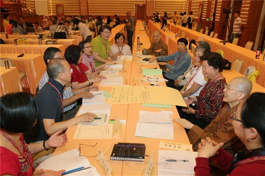 [caption id="attachment_1773" align="alignnone" width="520"] 講師黃美雪引導「人間佛教讀書會四層次帶領討論法」會中得到熱烈反應,紛紛以所聽的故事以單一、清楚的寫在紙條,貼上黑板並發表個人體驗與感想。[/caption] [caption id="attachment_1772" align="alignnone" width="520"] 「北區書香義工研習暨金光明寺雲水書車義工聯誼」於金光明寺海會堂舉辦,會場佈置成典雅有緻的茶席,在《千聲佛》幽美柔和、靜穆的的琴韻中,聞茶香、品茶味。[/caption] [caption id="attachment_1771" align="alignnone" width="520"] 區協會區委員徐月華指出,當義工要直下承擔,做好每一件事情,就能彰顯人間佛教的淨化善美。[/caption] [caption id="attachment_1770" align="alignnone" width="520"] 張獻欽說:「只要秉持六字箴言,確定、老實、簡單」就能將雲水義工的工作做好。[/caption] 2015-12-06 ‧ 活動報導 「北區書香義工研習暨金光明寺雲水書車義工聯誼」12月6日,於金光明寺海會堂舉辦,由人間讀書會滿穆法師主持,課程豐富多元;包含林郁惠及張白蘭的茶道、炬光協會郭品湘演奏古箏樂曲、新北市三峽國中劉遵恕專題演講「起司班學習成長故事」以及講師黃美雪引導「人間佛教讀書會四層次帶領討論法」,約40人參加。其中有遠從北海道場、寶塔寺而來的書香義工夥伴。 會場布置成典雅有緻的茶席,在「千聲佛」悠美柔和、靜穆的琴韻中,聞茶香、品茶味,彷彿來到唐代年間,寺院僧侶誦經不絕,佛聲深遠綿長;體會以茶顯樂,以樂映茶的雲水禪心。6位茶行者各據一方,熟稔優雅沏茶動作,呈現茶之淨、敬、靜。 義工分享單元,人間佛教讀書會石娟娟介紹日前在金光明寺舉辦的全民閱讀博覽會,兩千人歡喜共讀的盛況。北區協會區委員徐月華指出,知賓與書香義工雖然工作性質不同,但態度都是一樣,並有共同的信仰和目標,當義工要直下承擔,做好每一件事情,就能彰顯人間佛教的淨化善美。 「只要秉持道場的六字箴言,確定、老實、簡單,就能將雲水義工的工作做好」張獻欽說;孫玫琤則分享,11月中旬回山參加「雲水書坊—行動圖書館」義工講習的經驗與感動,獲益良多。 「起司班就是以七年四班的諧音而取的,雖然是常態分班,但班上仍有學習程度落差很大,甚至有學習障礙的學生,但以佛家平等觀念帶領他們。」劉遵恕表示,在班上培養資優學生協助老師教成績跟不上的同學,而獲益最大的是學生本身。資優生不但有協助他人的成就感,而受幫助的同學也交到好朋友,同時營造全班和樂的氣氛。 「起司班學習成長故事」單元,劉遵恕分享中輟生阿勇,因認真擦拭父親的骨灰罈,讓他感到「有情就有救」而盡力協助。阿勇從口出惡言、態度不羈,到因唱歌而找回自信。自閉症青少年俊佑不但沒有受到同學的歧視,反而在全班合力照顧下成為班上的開心果。此外,為高關懷班注入動力,培養學生自力更生的觀念與能力;特訓班也輔導加強學生的學科,幫助他們考試,進入理想學校。 人間佛教讀書會四層次帶領討論法,黃美雪以聞、思、修、證等四層次提問設計,複習劉遵恕演講內容,會中得到熱烈反應,紛紛以所聽的故事以單一、清楚的寫在紙條,貼上黑板並發表個人體驗與感想。她表示,生活處處都是書香,大師的人間佛教就是從聞、思、修、證四層次落實到生活中。 義工吳黎明歡喜的說,感謝讀書會總部義工研習的用心安排茶禪古箏慢賞、感人義工分享等內容;劉遵恕對待中輟生、自閉症學生的真誠樸質,無比耐心、高超教育智慧,令人敬佩。而且道場還準備熱騰騰的素麵線糊招待,一整天身心靈都被照顧得充實美好,太幸福了。