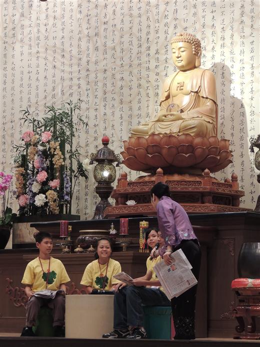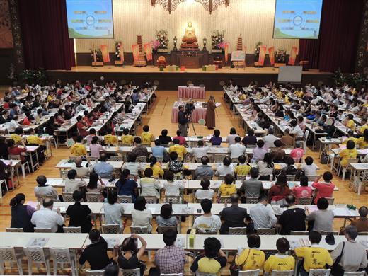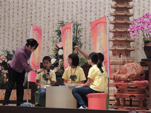 [caption id="attachment_1314" align="alignnone" width="520"] 靈活運用佛光山各項出版品[/caption] [caption id="attachment_1313" align="alignnone" width="520"] 悅讀趣[/caption] [caption id="attachment_1312" align="alignnone" width="520"] 穿起圍兜兜的莊月香,帶著扮演小鳥與打彈弓小朋友,一起上演「放生、護生」戲碼,生動傳遞小孩愛護動物正確行為[/caption] [caption id="attachment_1311" align="alignnone" width="520"] 悅讀人間福報[/caption] [caption id="attachment_1310" align="alignnone" width="520"] 多元材料示範帶領[/caption] [caption id="attachment_1309" align="alignnone" width="520"] 護生畫集[/caption] [caption id="attachment_1308" align="alignnone" width="520"] 穿起圍兜兜的莊月香,帶著扮演小鳥與打彈弓小朋友,一起上演「放生、護生」戲碼,生動傳遞小孩愛護動物正確行為。[/caption] [caption id="attachment_1307" align="alignnone" width="520"] 500位愛書人齊聚[/caption] [caption id="attachment_1306" align="alignnone" width="520"] 讓知識動起來[/caption] [caption id="attachment_1305" align="alignnone" width="520"] 覺培法師課程說明,強調「對話建構學習法」從對話中學習,「對話過程」包含有六項元素,「被理解、被接納、整理、釐清、宣洩、歸納」。提醒學員每一堂課要注意講師示範提問方式,如何有效「提問」很重要,好的提問可以刺激思考。[/caption] [caption id="attachment_1304" align="alignnone" width="520"] 彎腰練習每天大笑三聲[/caption] 2012-11-10 ‧ 活動報導 人間佛教讀書會總部於11月3日起連續兩天,在佛光山福慧家園舉行「2012年全國讀書會帶領人研習交流---靈活運用教材」,執行長覺培法師說明這次研習活動課程概況,於每一節結束前,帶領大眾回顧該節課的重點,並對講師講授內容作回饋。 這次研習營有堅強的讀書會講師群,依序有滿穆法師、劉秀勤、黃美雪、石娟娟、莊月香、范鴻英、彭桂芳等老師。課程內容教導及示範,如何選用身邊常接觸的佛光教材靈活運用,帶領來自全國各地和金、馬、澎湖離島地區500位愛書人,晚上「聆聽智者開示」與佛光山開山宗長星雲大師接心。 覺培法師課程說明,強調「對話建構學習法」從對話中學習,「對話過程」包含有六項元素,「被理解、被接納、整理、釐清、宣洩、歸納」。提醒學員每一堂課要注意講師示範提問方式,如何有效「提問」很重要,好的提問可以刺激思考。劉秀勤介紹如何運用《人間福報》傳達生命教育,示範如何引導小朋友讀報,從中關懷社會,瞭解國際訊息,從分享中學習尊重別人、愛護環境。 黃美雪藉著兩則卡通短片「懶惰」、「一滴水的價值」,以「聞思修證」四層次帶領,引導小朋友做正向思考,從自我省思中,注入品德價值觀,建構對自己期許與承諾。 滿穆法師從鉛筒抽「幸福法語」遊戲中,藉一句法語就可以輕鬆活潑帶領學員深入探討,分享個人生命故事;從一首人間音緣音樂「流轉」,開啟閱讀饗宴。石娟娟介紹《高僧漫畫》找尋人生典範時,看漫畫是最沒有讀書壓力,精彩介紹鑑真大師東渡日本弘法故事,一位從來不喜歡看漫畫的學員表示,聽完講師的分享,發願決心至少要看50本以上《高僧漫畫》書。 穿起圍兜兜的莊月香,帶著扮演小鳥與打彈弓小朋友,一起上演「放生、護生」戲碼,生動傳遞小孩愛護動物正確行為。范鴻英延續「放生、護生」理念,從《金玉滿堂‧佛光菜根譚》〈尊重生命〉,探討「一花一木都有生命,一山一水都有生機;一人一事都有道理,一舉一動都有因果」。 晚上,在傳燈樓4樓與大師接心,聆聽智者開示,大師強調,一切教育的目的在教育「人」要做一個覺者。讀書不僅要懂,更要能用才有價值。最後勉勵大眾終身讀書學習,人生要再高再好,一定要透過讀書。 第二天,將由彭桂芳介紹《佛光教科書》,引領大家走進佛教真理;覺培法師將為大家做課程總回饋。最後,將參加福慧家園共修,聆聽慈容法師的「人間佛教的修行觀」,圓滿兩天研討課程。 圖說:人間佛教讀書會總部於11月3日起連續兩天,在佛光山福慧家園舉行「2012年全國讀書會帶領人研習交流 靈活運用教材」,其中劉秀勤(右一)介紹如何運用《人間福報》傳達生命教育,示範如何引導小朋友讀報,從讀報中關懷社會,瞭解國際訊息,從分享中學習尊重別人、愛護環境。