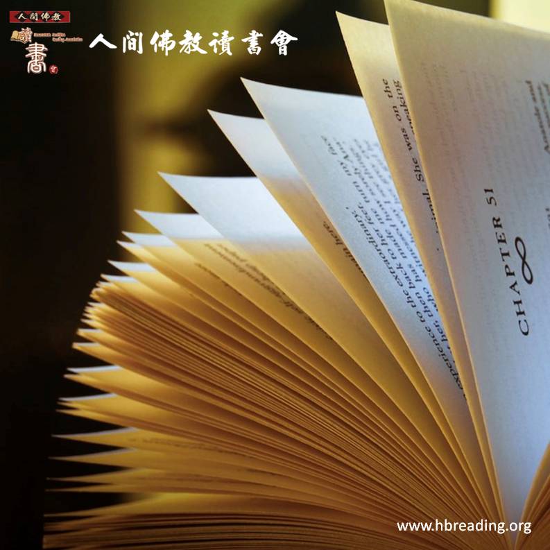 「人能弘道,非道弘人」,感謝家師六十年來對文化教育長期的耕耘,讓讀者有了各種佛教文化的書籍,感謝所有佛光讀友們的支持與響應,讓讀書會不僅有了「書」,更有了願意啟動閱讀的「人」,更感謝全球各道場的法師們提供了最佳的閱讀「地」。在讀書會的推動中,雖然離「生活書香化」的理想還有相當的距離,但是,我著實看到了家師所期許的「自心和悅、家庭和順、人我和敬、社會和諧、世界和平」目標,早已經不是口號,而是如滴水穿石地深植在每一位讀書讀友們的內心。