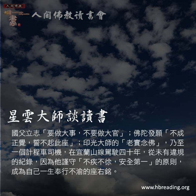 國父立志「要做大事,不要做大官」;佛陀發願「不成正覺,誓不起此座」;印光大師的「老實念佛」,乃至一個計程車司機,謹守「不疾不徐,安全第一」的原則,成為自己一生奉行不渝的座右銘。