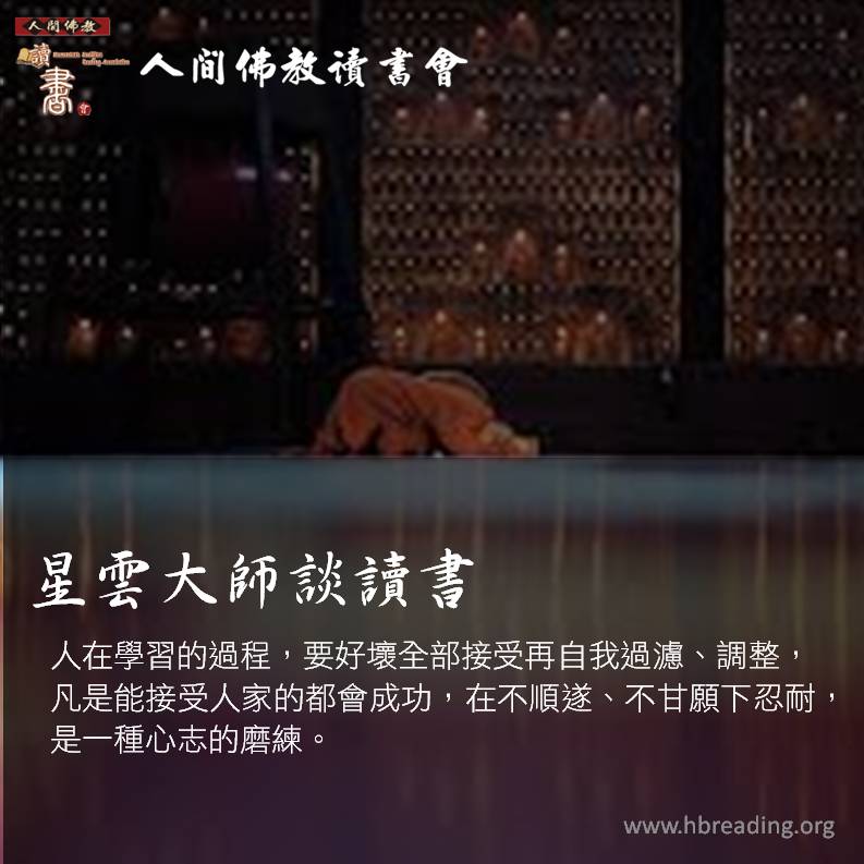 人在學習的過程,要好壞全部接受再自我過濾、調整,凡是能接受人家的都會成功,在不順遂、不甘願下忍耐,是一種心志的磨練。