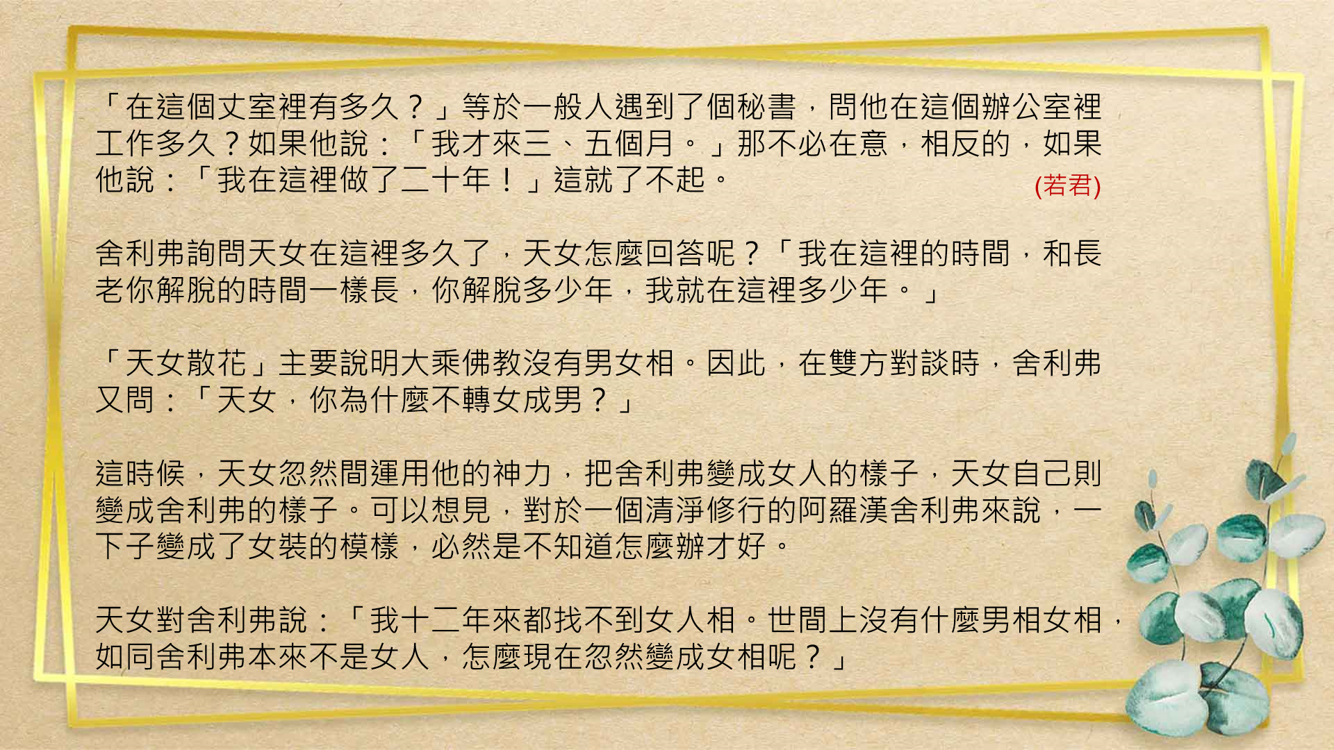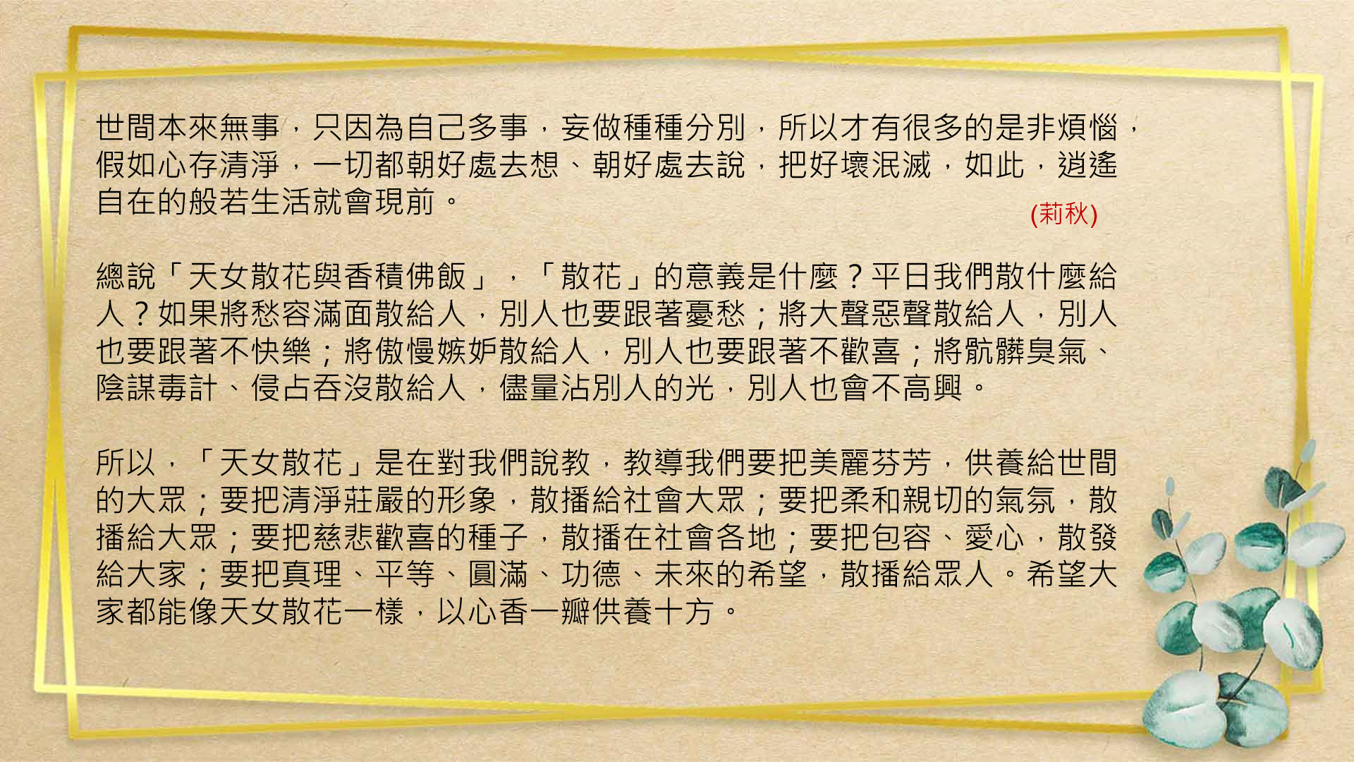 是一種享受,《深入經藏》更是讓眾生親嚐醍醐法味的最佳管道.在與讀書會友們交流討論中,開拓佛法的向度.人生有了佛法就能祥和自在,社會有了佛法就能尊重包容,世界有了佛法才能和平無爭。