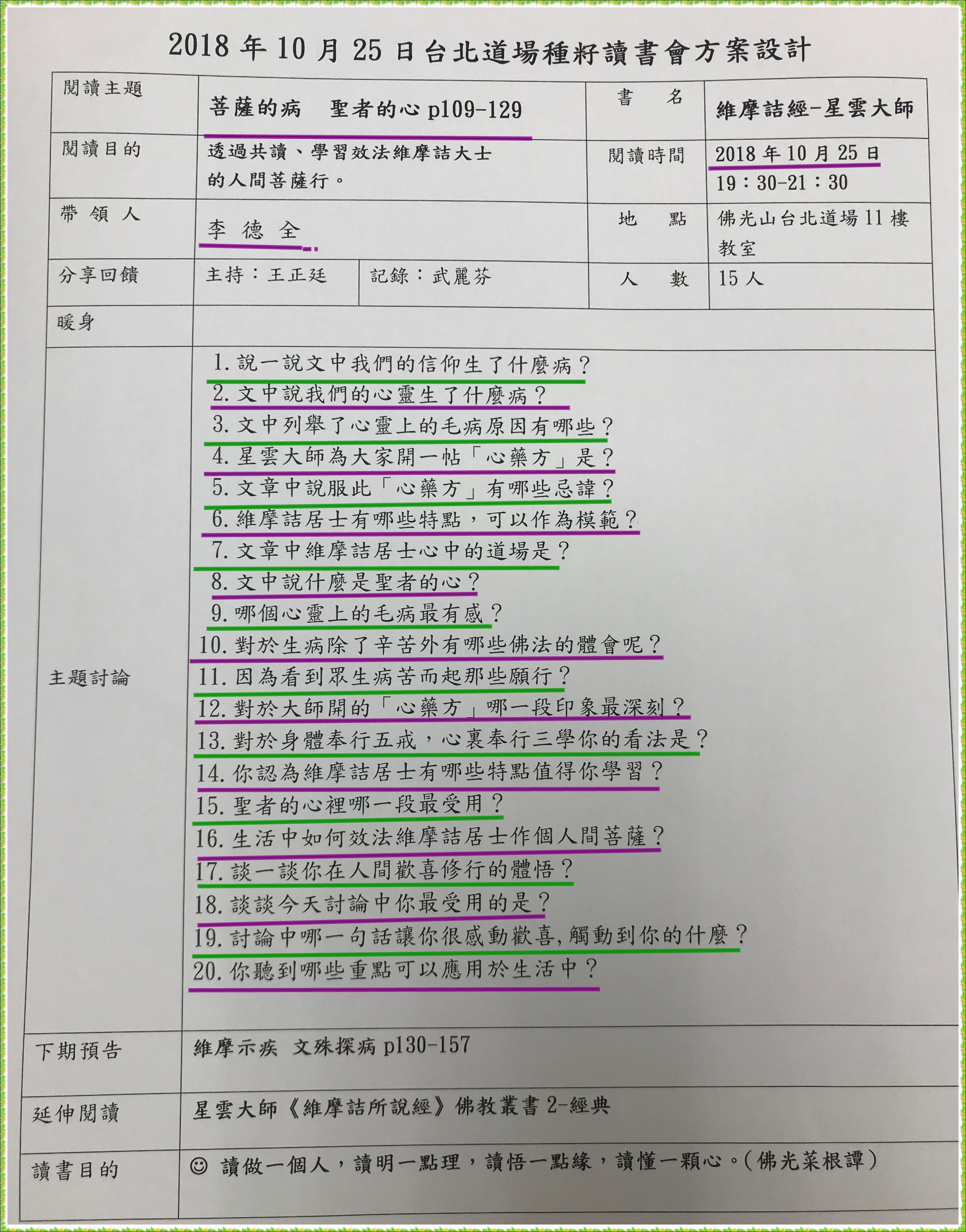 是一種享受,《深入經藏》更是讓眾生親嚐醍醐法味的最佳管道.在與讀書會友們交流討論中,開拓佛法的向度.人生有了佛法就能祥和自在,社會有了佛法就能尊重包容,世界有了佛法才能和平無爭。