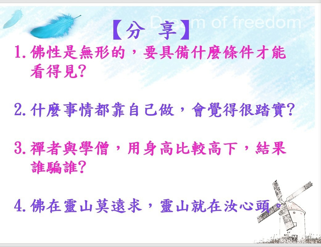 是一種享受,《深入經藏》更是讓眾生親嚐醍醐法味的最佳管道.在與讀書會友們交流討論中,開拓佛法的向度.人生有了佛法就能祥和自在,社會有了佛法就能尊重包容,世界有了佛法才能和平無爭。